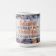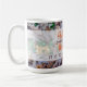This mug features a beautiful picture of fallen leaves with tiny yellow mushrooms among the green grass.