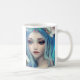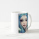 Pretty ethereal fairy tale art girl with flowers in her blue hair and quote on back of coffee mug. Ai art. generativecontent