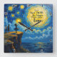 This captivating wall clock features a figure on a dramatic cliff, reaching towards a swirling, luminous moon or light source, with companions nearby, all under a dynamic, starry night sky and a restless ocean below. The powerful declaration, "Let Your Faith be bigger than your fear," is prominently displayed. With its intense, textured artistry reminiscent of a masterpiece, this timepiece serves as a constant, inspiring reminder to overcome apprehension with unwavering spiritual courage and belief.