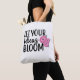 This tote bag features an inspirational quote "Let Your Ideas Bloom" and 3 pink flowers.
