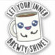 Let Your Inner Brewty Shine Funny Coffee Pun features a cute coffee mug reminding you to let your inner beauty shine. Perfect pun gift for family and friends who love positive cofffee puns.