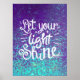 Let Your Light Shine Quote - Aqua Purple Sparkle Poster