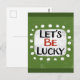 "Let's Be Lucky" is a cute text design with a white accent shape surrounded by white textured whimsical dots.