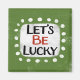 "Let's Be Lucky" is a cute text design with a white accent shape surrounded by white textured whimsical dots.
