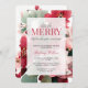 Christmas bridal shower invitation theme "Let's Be Merry Before She Gets Married" featuring elegant hand-painted red and green flowers with soft leafy accents, this design brings a romantic and feminine vibe perfect for Christmas gatherings, brunch showers, garden parties, and special pre-wedding celebrations. Customise the text to fit your event details and make it all yours.