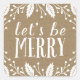 This pretty holiday sticker has a kraft-paper style background, white winter foliage, and the phrase "Let's be merry" in handwritten lettering.