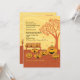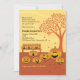 A Halloween invitation with jack-o-lantern-faced pumpkins featured on a park bench and under a fall tree. Perfect for your pumpkin carving party!