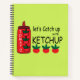 Lets Catch Up With Ketchup Notebook designed by Nisha Prabhu. Cute red tomatoes and ketchup illustration with funny typography. Get ready to add some flavour to your note-taking with this 'Let's Catch Up With Ketchup' notebook! Perfect for jotting down ideas, doodling, or keeping track of your thoughts, this playful notebook is a must-have for ketchup lovers and foodies alike. With a fun and colourful design that will make you smile every time you use it, this notebook is as practical as it is delightful. Treat yourself to this unique and charming notebook and spice up your stationery collection!