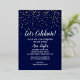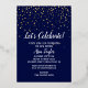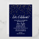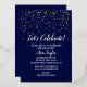 This Let's Celebrate Gold Confetti on Navy Blue retirement party gold foil invitation is perfect for a classy retirement celebration. The design features trendy real gold foil confetti with elegant white calligraphy on a navy blue background.