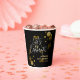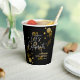 A modern, stylish and glamourous birthday paper cup. This design features a vibrant typography "Let's Celebrate" with gold gradient bokeh on a black background. Personalise and add your party details. Make your milestone birthday an extraordinary event!