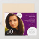 This fun and modern design is perfect your Birthday party invitation. Your favourite photo is sure to stand out from the rest on this elegant and modern photo invitation card. The background is purple coloured with white circles outlined in champagne. Your photo creates the main focus of your invitation with your text to the right. If you would like this design in another colour scheme, please contact me via the link on my front page or look for it in Plum and Champagne, Yellow and Green, Pink and Black, Black and Pink, Black and White, Purple and White, and Brown and Periwinkle Blue. This is set up for turning 30 - but all of the text is customizeable for any age.