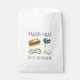 Just personalise with your information! Favour bag features an original marker illustration of a beignet, beads, shrimp po'boy sandwich, and masquerade mask, with LET'S CELEBRATE MARDI GRAS in a purple font.