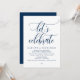 Mark the beginning of your forever with elegance using our contemporary modern navy blue themed wedding elopement celebration invitation card, "Let's Celebrate", brunch, lunch, dinner, party and dancing. Perfect for couples extending their joyous occasion, this invitation exudes sophistication with a hint of playfulness, setting the stage for a memorable event. Adorned with a timeless modern script design theme, it adds a touch of refined charm to your festivities. Crafted by TeeshaDerrick, this invitation promises to beautifully capture your love story.