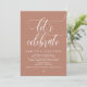 Mark the beginning of your forever with elegance using our contemporary modern terracotta brown earthy themed wedding elopement celebration invitation card, "Let's Celebrate", brunch, lunch, dinner, party and dancing. Perfect for couples extending their joyous occasion, this invitation exudes sophistication with a hint of playfulness, setting the stage for a memorable event. Adorned with a timeless modern script design theme, it adds a touch of refined charm to your festivities. Crafted by TeeshaDerrick, this invitation promises to beautifully capture your love story.