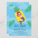 Cute pool birthday party invitation featuring a mermaid floating on a pineapple float.