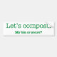 Let's Compost. My Bin or Yours? Bumper Sticker