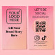A modern vertical business card designed for social-media-focused brands. Features a scannable QR code, Instagram and TikTok icons, and space for your logo, handle, and contact info. Soft pink-to-peach gradient background with flowing organic shapes and a friendly call-to-action makes it perfect for small businesses, creators, and boutiques who want to connect instantly with customers online.