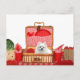 Cute white pomeranian intends to go on a picnic and has hopped into the basket showing he's ready to go dog lovers picnic postcard