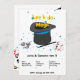 The let's do magic kids joint birthday party invitation card makes a black, white, and blue magical birthday celebration. The card design shows a magician hat, wand, playing cards, and dice.