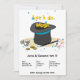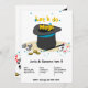The let's do magic kids joint birthday party invitation card makes a black, white, and blue magical birthday celebration. The card design shows a magician hat, wand, playing cards, and dice.