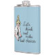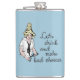 The flask itself is fine. It’s a cheap flask, obviously bought in bulk, however am prepared to overlook that. Given that it is a personalized item, I would have liked to have seen gift boxing instead of the generic packaging. Terrible printing, and/or quality. It’s a cheap, tacky vinyl. It is not cut straight and is also applied in a way that it is overhanging the bottom, causing the glue to catch on items and it will eventually roll and tear, damaging the wrap.