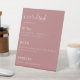 Modern minimalist bar list, wedding sign. Trendy typography design style template in white text on dusty rose colour background.