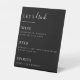 Modern minimalist bar list, wedding sign. Trendy typography design style template in white text on black background.
