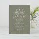 Celebrate the magical evening before “I do” with this sophisticated and romantic rehearsal dinner invitation — perfect for honoring the couple as they prepare for their big day. Design Highlights, Modern minimalist aesthetic with bold serif typography and flowing script, “Let's eat drink and rehearse" headline sets a dreamy, timeless tone, Clean layout with ample space for all essential wedding details (date, time, venue, RSVP info) and contemporary white text on olive sage green background — classic, chic, and effortlessly elegant. Perfect for Intimate rehearsal dinners, Pre-wedding celebrations with family and close friends and Couples who love modern calligraphy and understated luxury. Fully customisable on Zazzle — personalize names, dates, locations, and even add your own colours or fonts. Print as flat cards, folded invitations, or digital downloads. Let your guests know this is more than just dinner — it’s the night before forever. Order now and set the tone for an unforgettable celebration!