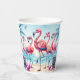 Celebrate in style with our fun and vibrant 'Let's Flamingle Beach Party' paper cups! Featuring five dancing pink flamingos on a sunny beach, this is a perfect design for any beach-themed birthday bash. With palm tree borders, music notes, and pink disco balls, this design sets the perfect tone for a lively and memorable party. Ideal for both kids and adults, this unique design is sure to get everyone excited on the big day!