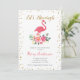 Let's Flamingle Bridal Shower Invitation, with flamingo, floral and gold confetti.