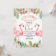 Flamingo themed girl's birthday invitation featuring two pink flamingos and some rose gold words and tropical foliage and flowers. Great for a flamingo themed girl's birthday party. Faux rose one one is removable.