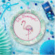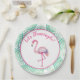 Watercolor Flamingo design features green foliage leaf border with pink elements and a colourful flamingo. Use for any occasion!