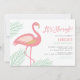 Let's Flamingle Tropical First Birthday Party Invitation. Customizable first birthday invitation featuring illustrations of flamingo and palm leaves. This tropical invitation is perfect for summer birthday parties. Let's Flamingle!