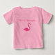 This is an adorable pink tutu bodysuit for a baby girl, that is decorated with the fun saying "Let's Flamingle", and a pretty pink flamingo.