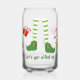 Lets Get Elfed Up Humourous Christmas trendy style can glass from Ricaso - a fun addition to your holiday season - featuring elf legs with striped green and white tights