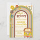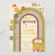 Let's get groovy! A fun birthday party invite with bright colours, a chic arch, and retro-inspired typography.