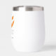Personalise these spooky wine tumblers to create a perfect Halloween party favour. Design features an orange jack o'lantern face with two lines of custom text beneath; shown with "let's get lit" and your Halloween party name and year.