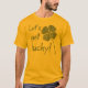 Funny vintage St. Patrick's day tee shirt design by Moody Lizard. It says Let's Get Lucky! and has a shamrock on the side.