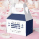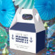 Blue and white striped "let's get nauti" favour box for a bachelor / bachelorette party. Personalise it with your own text.