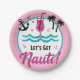 Set the table for fun with these “Let’s Get Nauti!” pink glitter bachelorette plates! Featuring tropical drinks, anchors, and palm trees, they’re perfect for a beachy bridal bash, cruise party, or girls weekend.