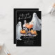 This spooky-fun invitation features a ghost, pumpkins, a spooky cocktail, and a skull. The words "Let's get sheet faced" are written in a script font. It's the perfect way to invite your friends to a Halloween party where they can come dressed up in their costumes and enjoy some boozy cocktails.