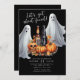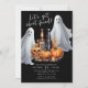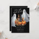 This spooky-fun invitation features a ghost, pumpkins, a spooky cocktail, and a skull. The words "Let's get sheet faced" are written in a script font. It's the perfect way to invite your friends to a Halloween party where they can come dressed up in their costumes and enjoy some boozy cocktails.