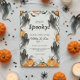 Get ready for a spooktacular night! Our Halloween party invitation is the perfect way to summon your ghouls and goblins for a night of frightful fun. Featuring a hauntingly good design featuring watercolor twisty trees, black ghosts, bats, and smiling Jack o'lanterns. Whether you're planning a costume contest, a haunted house, or a monster mash, our invitation sets the perfect tone. Don't miss out on the best Halloween party of the year—send your invitations today and get ready to scare up some fun! Created by Simply Farmhouse Press.