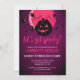 Modern Halloween design for spooktacular birthday party with scary pumpkin on purple pink moon background and pumpkins and flying bats on the backside. A gender-neutral design, perfect for October celebrations! Birthday party template is easy to customise.
