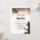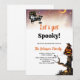 Modern Halloween-themed design for a spooktacular party! a pumpkin balloon. Cards reverse to a black and white dotted pattern against an orange background