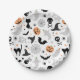 A Halloween party Paper plate featuring spooky illustrations.