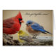 A gathering of birds, a cardinal, a bluebird, and a warbler, is a fun, fanciful way of inviting friends to gather for a visit.