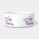 This fun and cute Let's get Tropical with pink flamingos graphic on this doggie bowl is perfect for your pet. Design by Inge Lewis. Great gifts for your family, friends or visitors. Find more matching items at the ingeinc.com boutique / store.