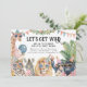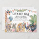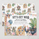 Celebrate a birthday that’s full of wild fun with this playful Let’s Get Wild jungle animals birthday invitation. Featuring a cheerful group of watercolor safari animals including a lion, zebra, tiger, monkey, gorilla, and giraffe wearing festive party hats and sunglasses, this design creates the perfect atmosphere for a lively jungle-themed celebration.
