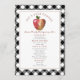 Thanksgiving menu featuring illustration of a folk art inspired apple. Black and white buffalo plaid border and reverse. All text can be customised.